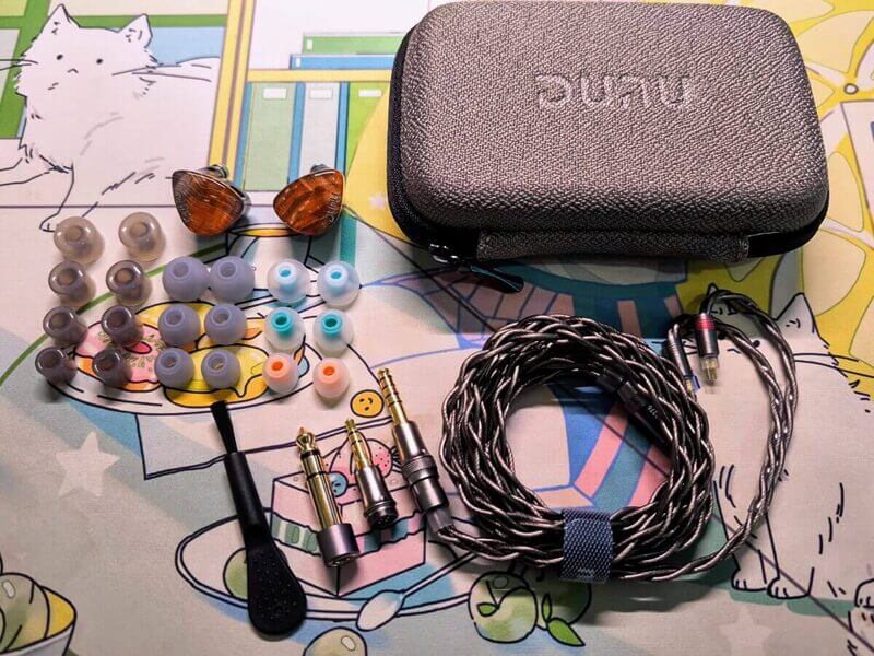 イヤーピースは豊富に取り揃えられており、デフォルトのバランス型イヤーピースの他には同社定番の「DUNU S&S Eartips」や「DUNU Candy Eartips」も含まれています。
