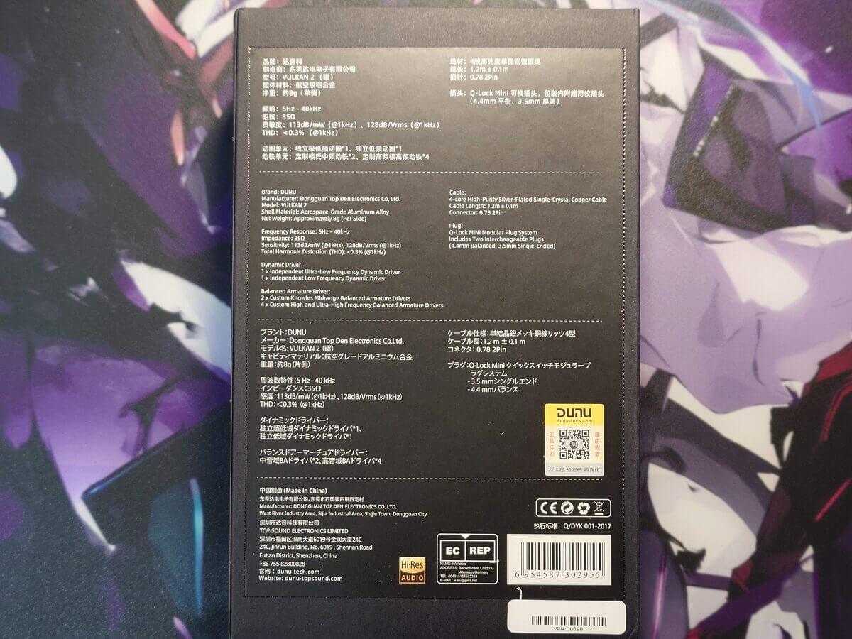「DUNU Vulkan 2」は、ブラックを基調とした高級感のある外箱に収められています。