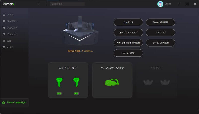 既に「Pimax Crystal Light」を接続している場合は、以下のとおり自動的に認識されます。