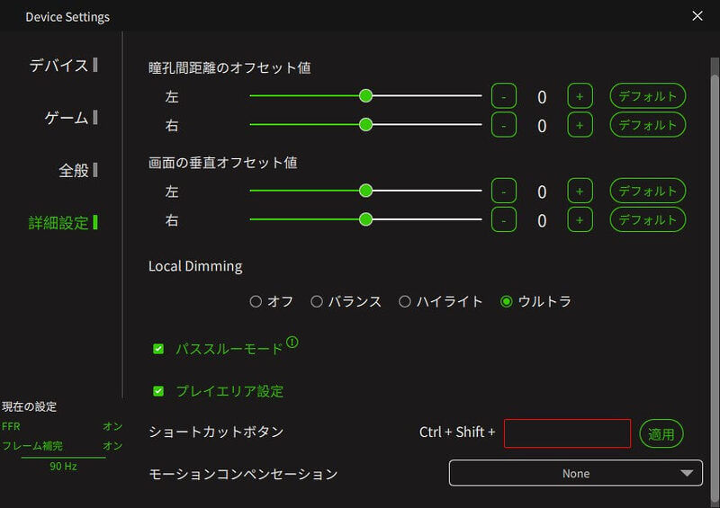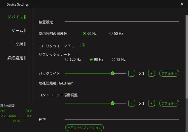 機能が削減されている分、「Pimax Crystal Light」で設定可能な項目はそこまで多くないといった印象ですが、2項目をピックアップしておきたいと思います。