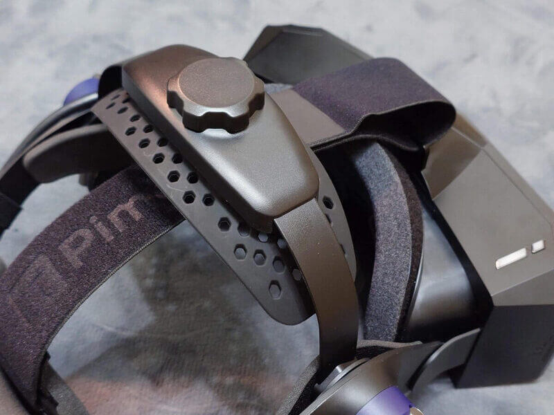円形部分のネイビーカラーが、全身真っ黒な「Pimax Crystal Light」のアクセントになり引き立ちます。